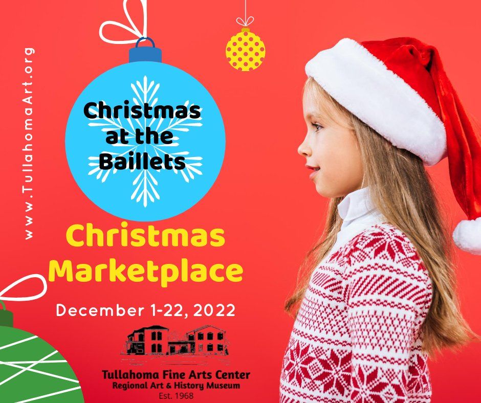 The Tullahoma Fine Arts Center invites you to shop local in Tullahoma and support our local artisans! The TFAC Christmas Marketplace: Christmas at the Baillet's will be held at the Tullahoma Fine Arts Center December 1-22, 2022, with extended hours. We have some amazing artisans & members participating this year from paintings, handmade wooden ink pens to seasonal baked goods! Be sure to plan a visit to the Christmas Market this year-where there are unique handmade gifts for all! Hours of Operation: December 1-3, 2022 10:00am-3:00pm December 6 - 17, 2022 Tuesday-Saturday 10:00am-5:00pm December 20 - 22, 2022 10:00am-7:00pm